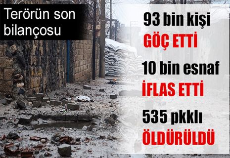 İçişleri Bakanlığı’nın verdiği rakamlara göre şimdiye kadar 535 PKK’lı terörist öldürüldü. 93 bin kişi göç etti, yaklaşık 10 bin esnaf dükkan kapatmak zorunda kaldı.