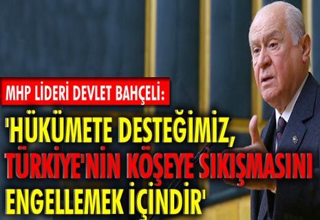 "Hükümete desteğimiz, terörle mücadelenin başarıya ulaşması, dış politikada elinin zayıf olmaması, küresel ve bölgesel ablukaya karşı milli ruhu sağlam ve diri tutmak, Türkiye'nin köşeye sıkışmasını engellemek içindir.