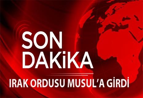 Irak'ta iki hafta önce başlayan Musul operasyonunda 'son dakika' gelişmesi... Savunma Bakanlığı tarafından yapılan açıklamada, orduya bağlı 9. Zırhlı Tugay'ın Musul'a girdiği belirtildi.