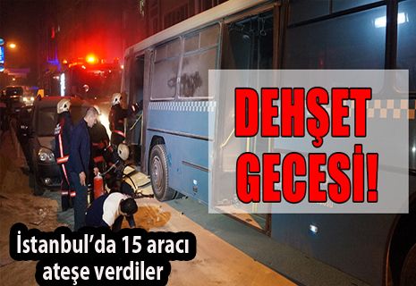 İstanbul’un Şişli, Zeytinburnu, Küçükçekmece ve Gaziosmanpaşa ilçelerinde park halindeki 15 araç benzin dökülerek yakıldı. Okmeydanı Mahmut Şevket Paşa Mahallesi spor Sokak’ta park halinde bulunan 5 araç, benzin dökülerek ateşe verildi. Yangın Şişli itfaiye ekipleri tarafından söndürüldü. Zeytinburnu Gökalp Mahallesi’nde gece saat 02.00 sıralarında 39/1 Sokak’ta da park halindeki 8 araç ateşe verildi. Kısa sürede olay yerine gelen itfaiye ekipleri yanan araçları söndürerek soğutma çalışması yaptı. Bu arada Bağcılar Kirazlı Mahallesi’nde şüphelendikleri 5 kişinin ellerindeki poşetleri kontrol eden polis, 15 litre benzin, 17 boş cam şişe, 16 havai fişek, 1 koli bandı, 1 huni ve çok sayıda plastik eldiven buldu. Bunun üzerine gözaltına alınan şüphelilerden Kasım C. (18) Terörle Mücadele Şube Müdürlüğü’ne, Zeynel D. (16), Sadık A. (17), Fedai D. (13) ve Murat D. (17) Çocuk Şube Müdürlüğü’ne götürüldü. Kağıthane’de Çağlayan-Eminönü seferini yapan özel halk otobüsüne kimliği belirsiz kişilerce molotof atıldı. Otobüsü durduran şoför, kapıları açarak yolcuları tahliye etti. Astım hastası olduğu öğrenilen ve dumandan etkilenen otobüs şoförüne olay yerindeki sağlık ekipleri müdahale etti. Olayda yaralanan olmadı.