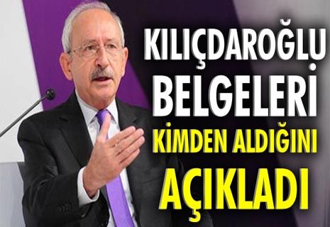 CHP Genel Başkanı Kılıçdaroğlu Cumhurbaşkanı Erdoğan hakkında iddia ettiği belgeleri kimden aldığını açıkladı. 'Eşitlik Adalet Kadın Zirvesi'nde konuşan Kılıçdaroğlu, "FETÖ'cüler vermedi, yok efendim ilgisi yok. Bu ülkeyi seven milyonlarca bürokrat var" dedi. Kılıçdaroğlu, belgelerin sahte olduğu iddiasının sorulması üzerine "İlk açıklamadan bu yana bütün stratejilerimiz tuttu. Kim hangi konuşmayı yapacak, o da bizim düşündüğümüz süre içinde gerçekleşti. Şimdi bir adımımız daha kaldı. Onu da bugün yarın gerçekleştireceğiz" diye konuştu.
