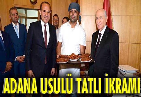 Törene Adana'dan MHP'li Karaisalı Belediye Başkanı Saadettin Aslan, İmamoğlu Belediye Başkanı Gazi Adamhasan, Feke Belediye Başkanı Ahmet Sel, Sarıçam Belediye Başkanı Bilal Uludağ, Pozantı Belediye Başkanı Sami Baysal, Saimbeyli Belediye Başkanı Mustafa Şahin Gökçe, MHP Sarıçam İlçe Başkanı Mustafa Kızılelma, Ceyhan İlçe Başkanı Mustafa Bayar, Kozan İlçe Başkanı Nihat Atlı ve kalabalık bir heyetle birlikte katılan Başkan Sözlü, MHP Lideri Devlet Bahçeli'ye Adana usulü halka tatlı götürdü. Lider Devlet Bahçeli, Başkan Sözlü'nün tatlı ikramını tebessümle karşılarken Adanalı hemşerilerine selam gönderdi.