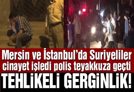 İstanbul’daki olayın sıcaklığı geçmeden benzer bir haber de Mersin’den geldi. Ülkelerinde yaşanan savaş ortamından kaçarak Mersin'e gelen Suriyeliler, ‘Gürültü yapmayın, uyuyacağım' uyarısında bulunan 1 çocuk babası 24 yaşındaki Hanifi Hisak'ı, bıçaklayarak ölümüne neden oldu. Olaydan sonra büyük gerginlik yaşanırken, Suriyeli Aile'den 5 kişi gözaltına alındı. Polisin, bölgede yoğun önlemi devam ederken, cinayete neden olan Suriyeli gencin yakalanması için çalışmalar sürüyor.