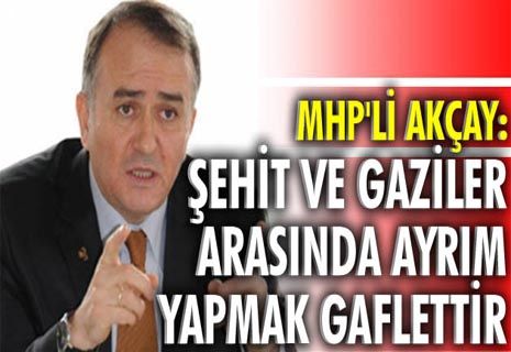 AKP'nin 15 Temmuz şehit ve gazileri ile terörle mücadele şehit ve gazileri arasında ayrım yaptığını söyleyen MHP'li AKÇAY, " 667 ve 670 sayılı Kanun Hükmünde Kararnamelerle 15 Temmuzdaki darbe girişimi sırasında hayatını kaybedenlere şehitlik, yaralılara gazilik unvanı verilmiştir. Yine bu kanun hükmünde kararnamelerle terörle mücadelede şehit ve gazilere verilen tüm haklar 15 Temmuz şehit ve gazilerine de verilmiştir. Milliyetçi Hareket Partisi, şehit ailesi ve gazilerin yaşam standardını artırmaya yönelik her türlü düzenlemeye destek vermiştir. Bundan sonra da bu desteğimiz devam edecektir. AKP, 15 Temmuz şehitleri ve gazileri ile terör şehit ve gazileri arasında ayırım yapmaktadır. Milliyetçi Hareket Partisi olarak, 15 Temmuz şehitleri ve gazileri ile terörle mücadele şehit ve gazileri arasında ayrım yapılmasına kesinlikle karşıyız. 2330 sayılı Kanun'a göre şehit aileleri ve gazilere tazminat bağlanmaktadır. Ancak 670 sayılı Kanun Hükmünde Kararnamesiyle, 15 Temmuz şehit ve gazilerine, terörle mücadele şehit ve gazilerinin 5 katı tutarında tazminat ödenmektedir." dedi.