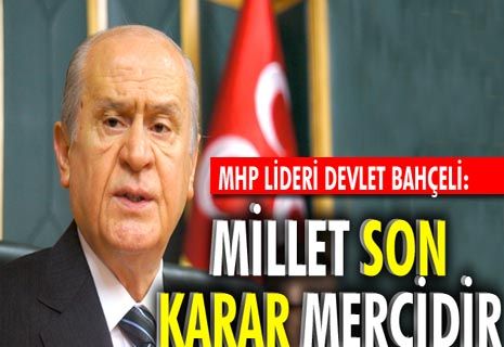"Meclis Genel Kurulu'nda 18 madeleik anayasa değişiliğiyle görüşmelere 9 Ocak'ta başlamış, 21 Ocak'ta sonuçlandırmıştık. Meclis parti grubumuza toplantılarımıza ara vermiştik. MHP her türlü engelleme ve karşı saldırılara rağmen milletine hizmet etmenin gururuyla yoluna devam etmektedir. İradesizler azgınca faaliyettedir. Milletten kaçanların karanlık emelleri faaldir. Bu çevreler hoplasalar da zıplasalar da Türk milletinin egemenlik haklarına ambargo koyamayacaklardır. Millet son karar mercidir. Millet hükmün sahibidir. Milliyetçi Hareket lobilerin, kulislerin, kaymak tabakaların partisi değil. Bizim yönümüz Hakka, yüzümüz halka dönüktür.