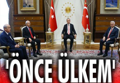 Cumhurbaşkanı Erdoğan, Başbakan Yıldırım, CHP Genel Başkanı Kılıçdaroğlu ve MHP Lideri Bahçeli'yi kabul etti. Daha önce hiç Cumhurbaşkanlığı Sarayı'na gitmeyen MHP Lideri Bahçeli, söz konusu "vatan" olunca gerisini teferruat saydı.