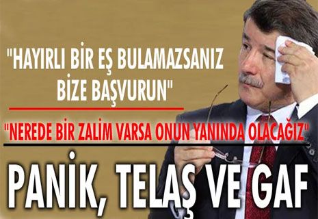 Patlayan bombaların AKP'nin oylarını yükselttiğini söyleyerek bütün dünyayı hayrete düşüren; "Beyaz Toros" masallarıyla milleti korkutmaya çabalayan Başbakan Ahmet Davutoğlu'nun son numarası, "Hayırlı bir eş bulamazsanız bize başvurun" oldu.