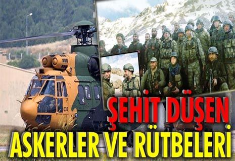 ŞIRNAK Şenoba’da dün akşam saatlerinde düşen helikopterde Türk Silahlı Kuvvetleri’nin (TSK) uzun süreden beri Kato Dağı’nda terör örgütü PKK’ya yönelik operasyonunu yöneten 23. Tümen Jandarma Sınır Komutanı Tümgeneral Aydoğan Aydın ile birlikte tümende üst düzey görev yapan rütbeli subaylar dahil 13 asker şehit düştü.