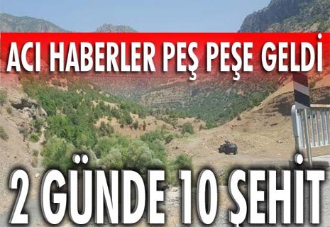 Türkiye, Diyarbakır'da şehit olan 2 askeri toprağa vermeye hazırlanırken, bugün de acı haberler peşpeşe geldi.Şırnak'ın Uludere ilçesinde PKK'lı teröristler tarafından yola döşenen bombanın askeri aracın geçişi sırasında infilak ettirilmesiyle 5 asker şehit oldu, 8 asker de yaralandı. Beytüşşebab ilçesinde de Gümrük Kapısı'na giden araçlara yapılan saldırıda 3 asker şehit oldu, 10 asker yaralandı.
