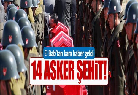 Fırat Kalkanı operasyonundan kara haberler art arda geldi. TSK'nın 4 olarak açıkladığı şehit sayısı 14'e yükseldi, 6 askerimiz ise ağır yaralı. TSK, Suriye'ye girdiğinden bu yana toplam şehit sayısı 35'e yükseldi.
