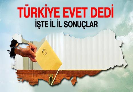 Türkiye yeni anayasayı anayasayı ve Cumhurbaşkanlığı sistemini onaylamak için sandık başına gitti. Sandıktan yüzde 51.24 ile evet, yüzde 48.76 ile hayır oyu çıktı. 48 milyon 452 bin 924 seçmenin oy kullandığı halk oylamasına katılım oranı yüzde 83 oldu. Referandumda en yüksek oyu yüzde 81.7 ile Bayburt'tan çıktı. En yüksek hayır oyu ise yüzde 80.3 ile Tunceli'den çıktı. İstanbul'da 51.2, Ankara'da ise 50.9 oranında hayır oyu çıktı.