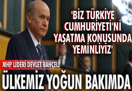 Sözlerine, "Hiç şüphe yok ki, bugünkü grup toplantımızı olağanüstü bir dönemde gerçekleştiriyoruz. Çünkü ülkemiz yoğun bakımdadır. Her gün oluk oluk kan kaybediyoruz. Her gün cami avlularında toplanarak bayrağa sarılı şehit naaşlarını kaldırıyoruz" diyerek başlayan Bahçeli, "Bir saldırı ve kayıp haberiyle sarsılırken, çok geçmiyor bir başkasını alıyor, bunu göğüslemeye çalışıyoruz. Türkiye'miz felaket üstüne felaket yaşıyor.Adeta ölümle imtihan ediliyoruz.