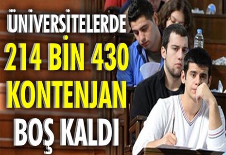 Üniversitelerin örgün lisans programlarında 50 bin 817, örgün ön lisans programlarında ise 163 bin 613 olmak üzere 214 bin 430 kontenjan boş kaldı.